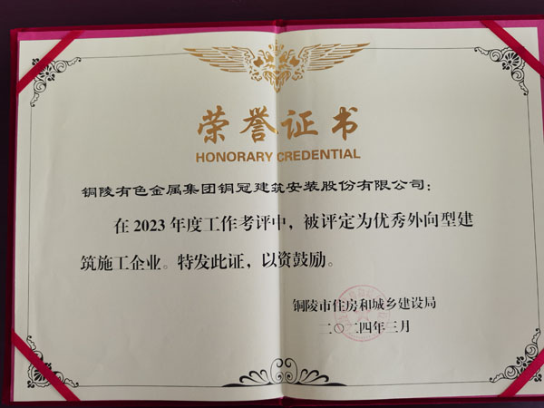 銅陵市優秀外向型建筑施工企業(2023年...