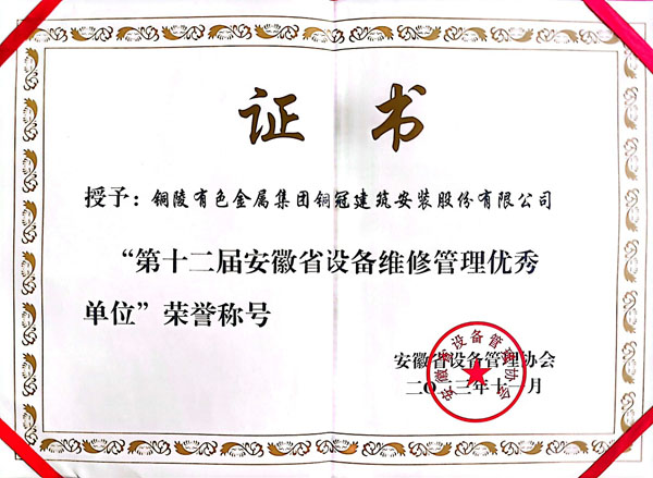 第十二屆安徽省設備維修管理優秀單位