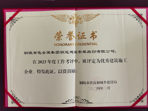 銅陵市優秀建筑施工企業(2023年度)